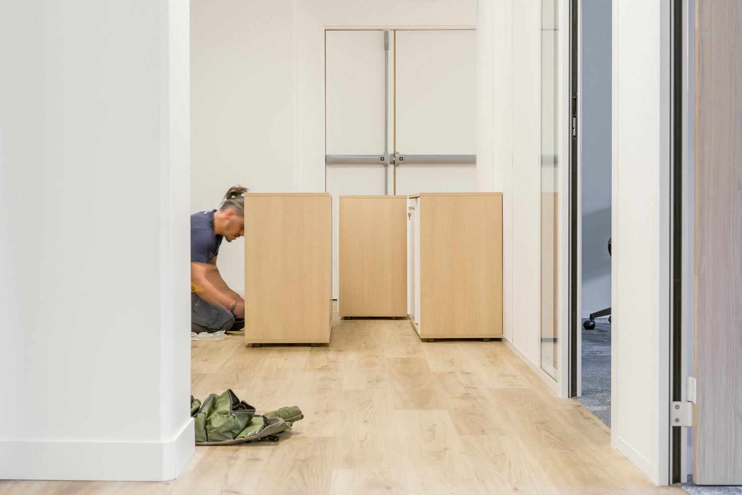 Installation de cloisons amovibles avec barrière phonique + meneaux vitrés en circulation