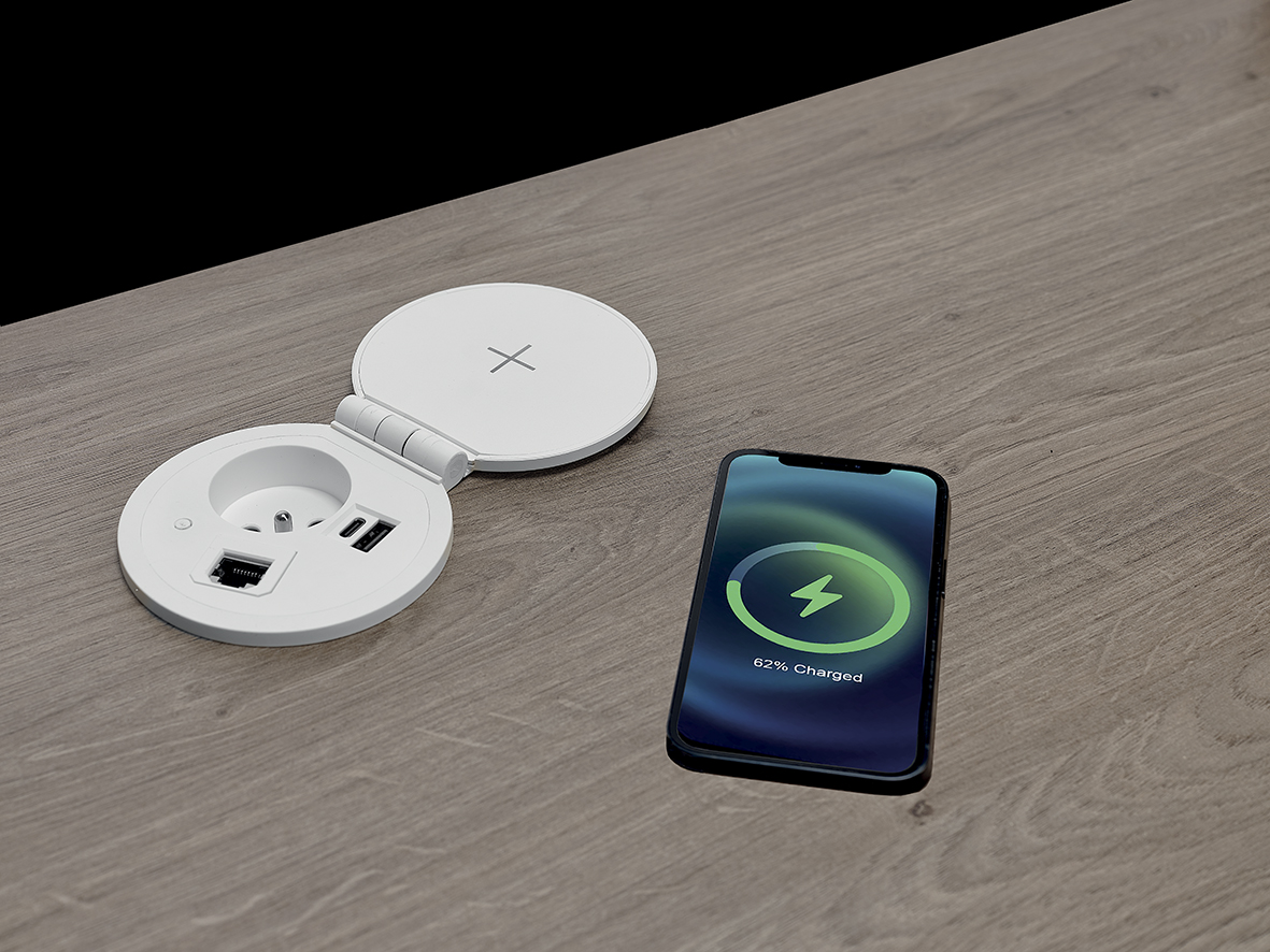 - BOITIER CONNECTIQUE CAPOT NOIR comprenant 1 chargeur induction , 1 pc, 1 usb a & 1 usb c , 1 rj45