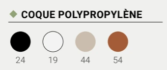 | Couleur Coque Siège | Noir (24), Blanc (19), Sable (44), Terra Cotta (54) |